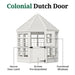 The door opening is 34" × 72". It’s a Dutch door with a window, colonial hinges, and a latch.